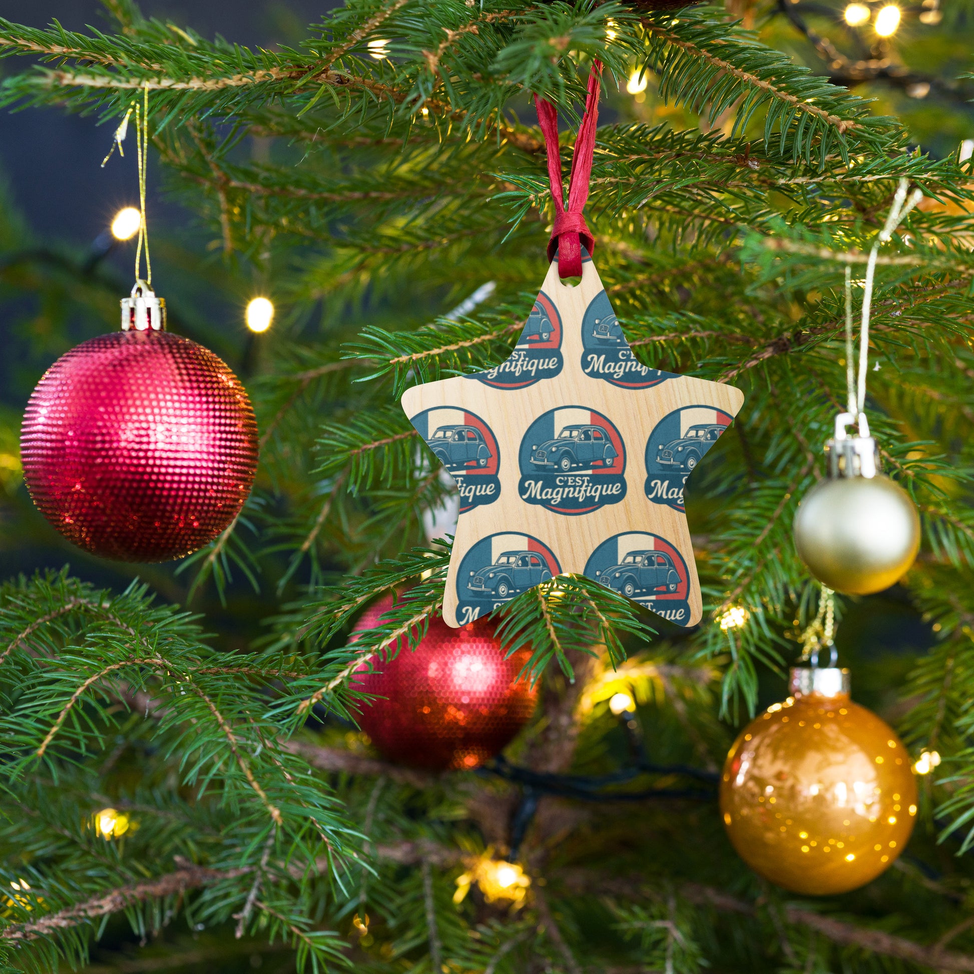 🎄 Wooden Christmas ornament "C'est Magnifique" | Citroën 2CV Design