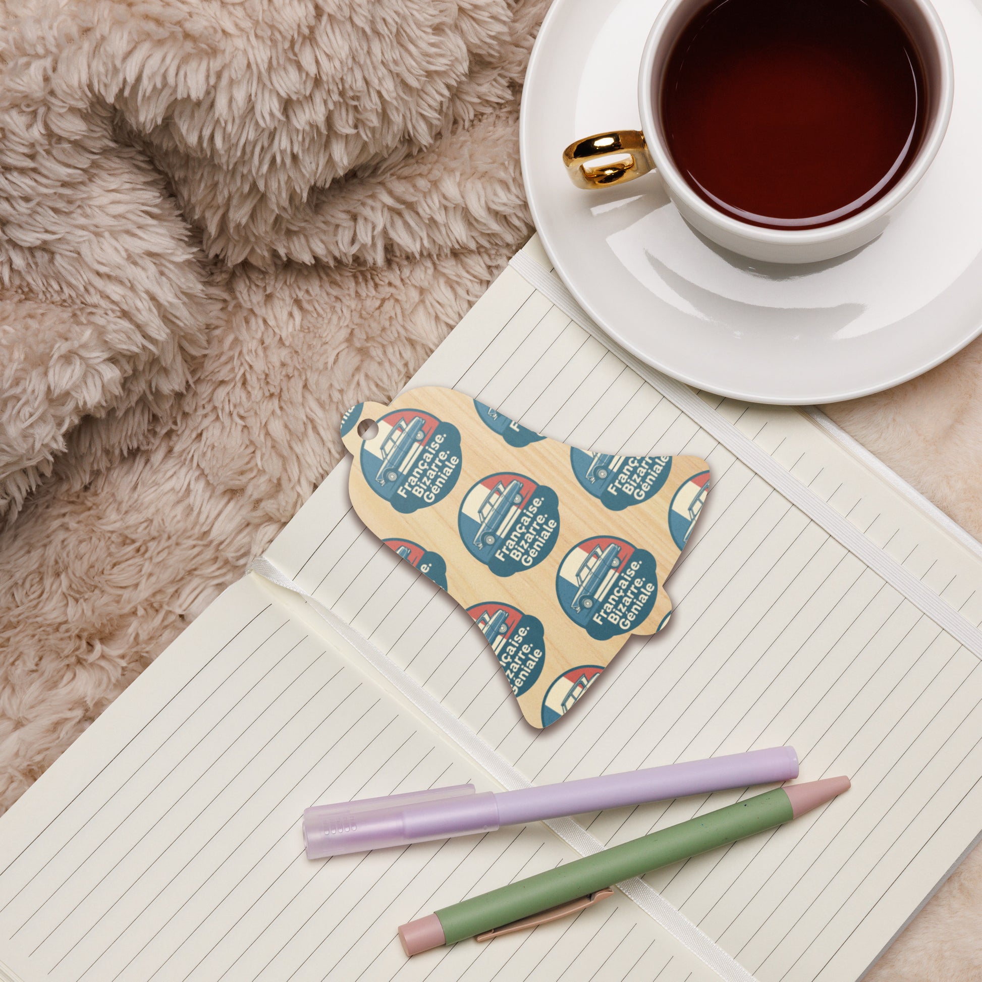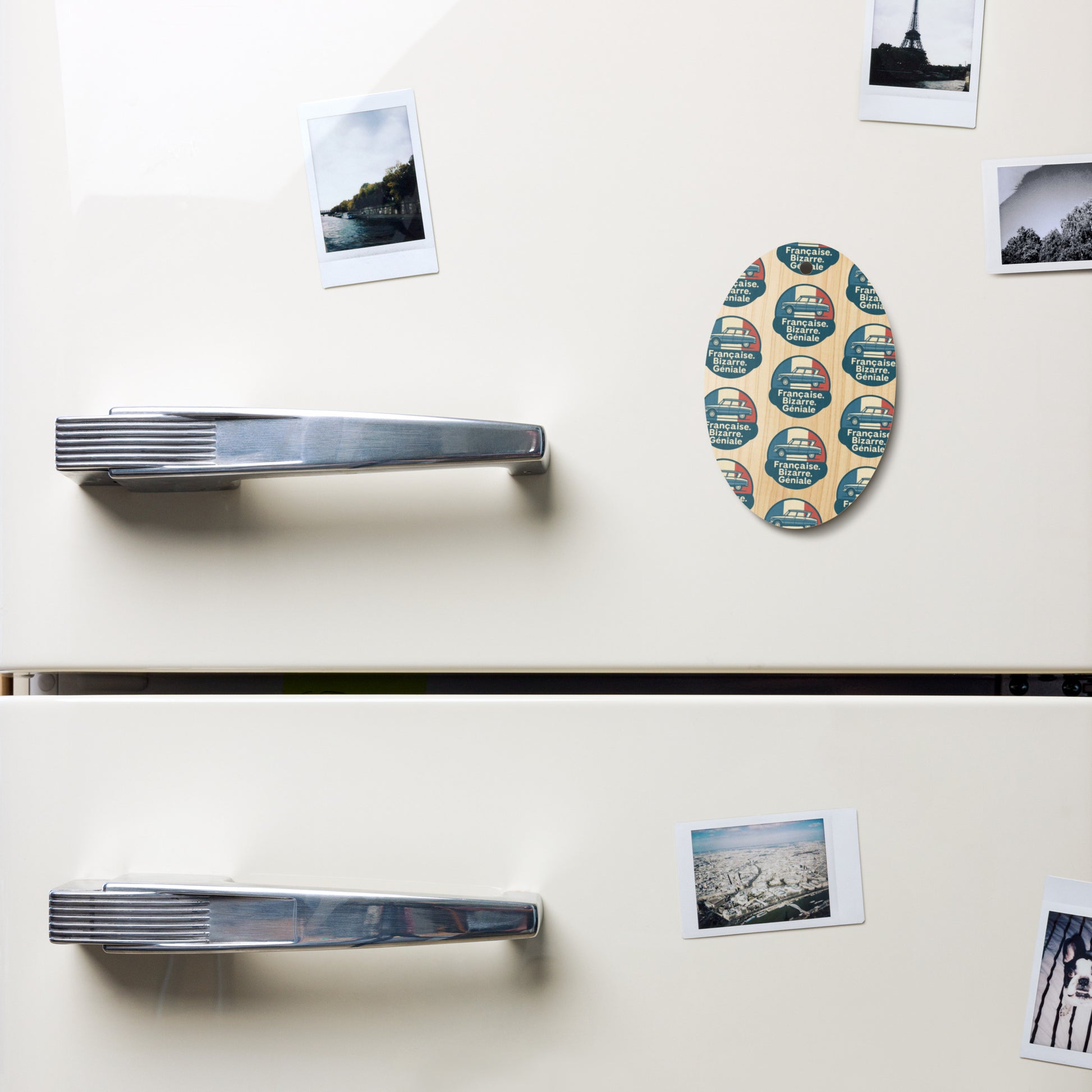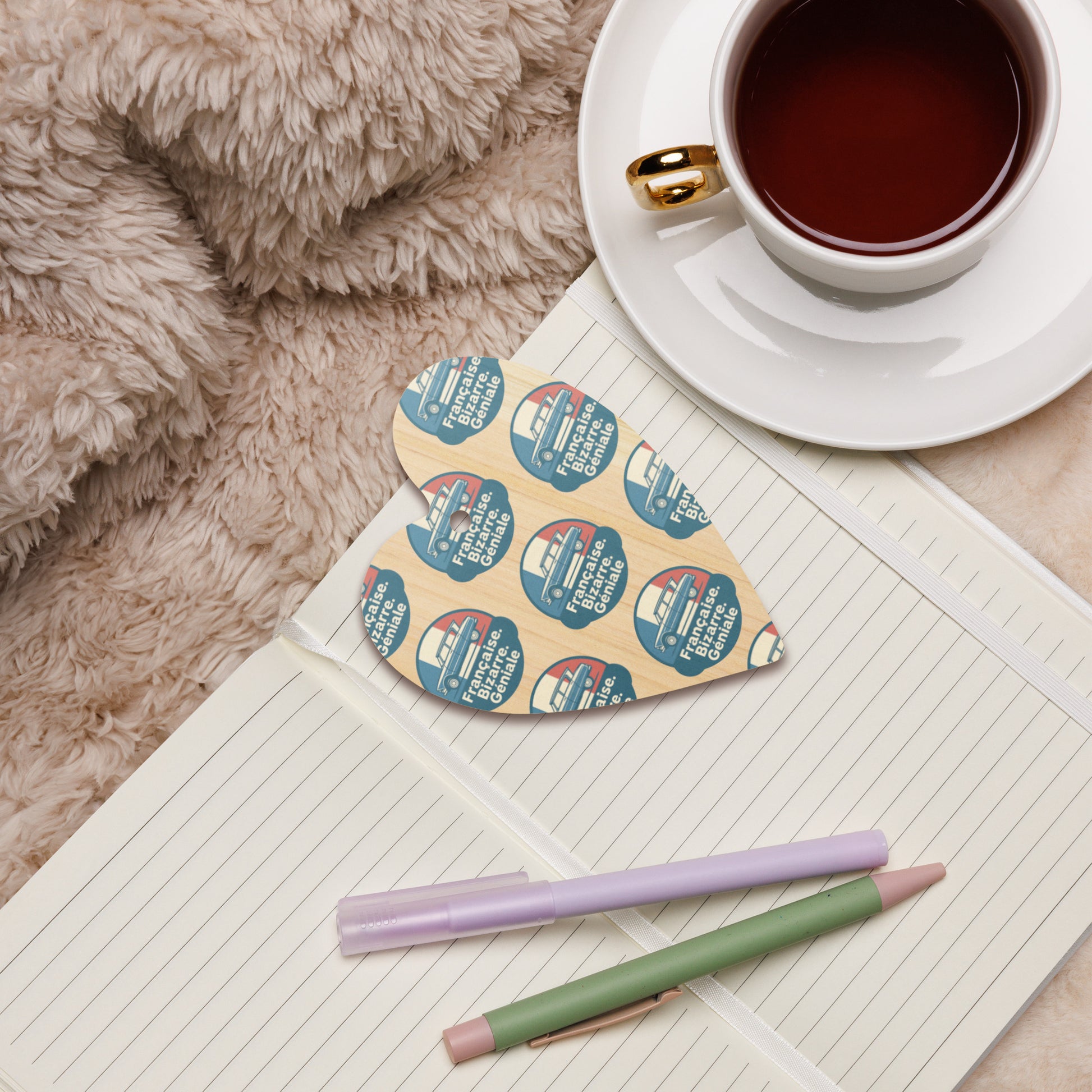 The design is a playful tribute to the legendary Citroën Ami 6: unique, idiosyncratic, and brilliantly French. The ornamentation showcases its iconic profile with its characteristic inverted rear window, against a background in the colors of the French flag . At the bottom, the text "Française. Bizarre. Géniale" radiates, a nod to the genius of this charming car brand.