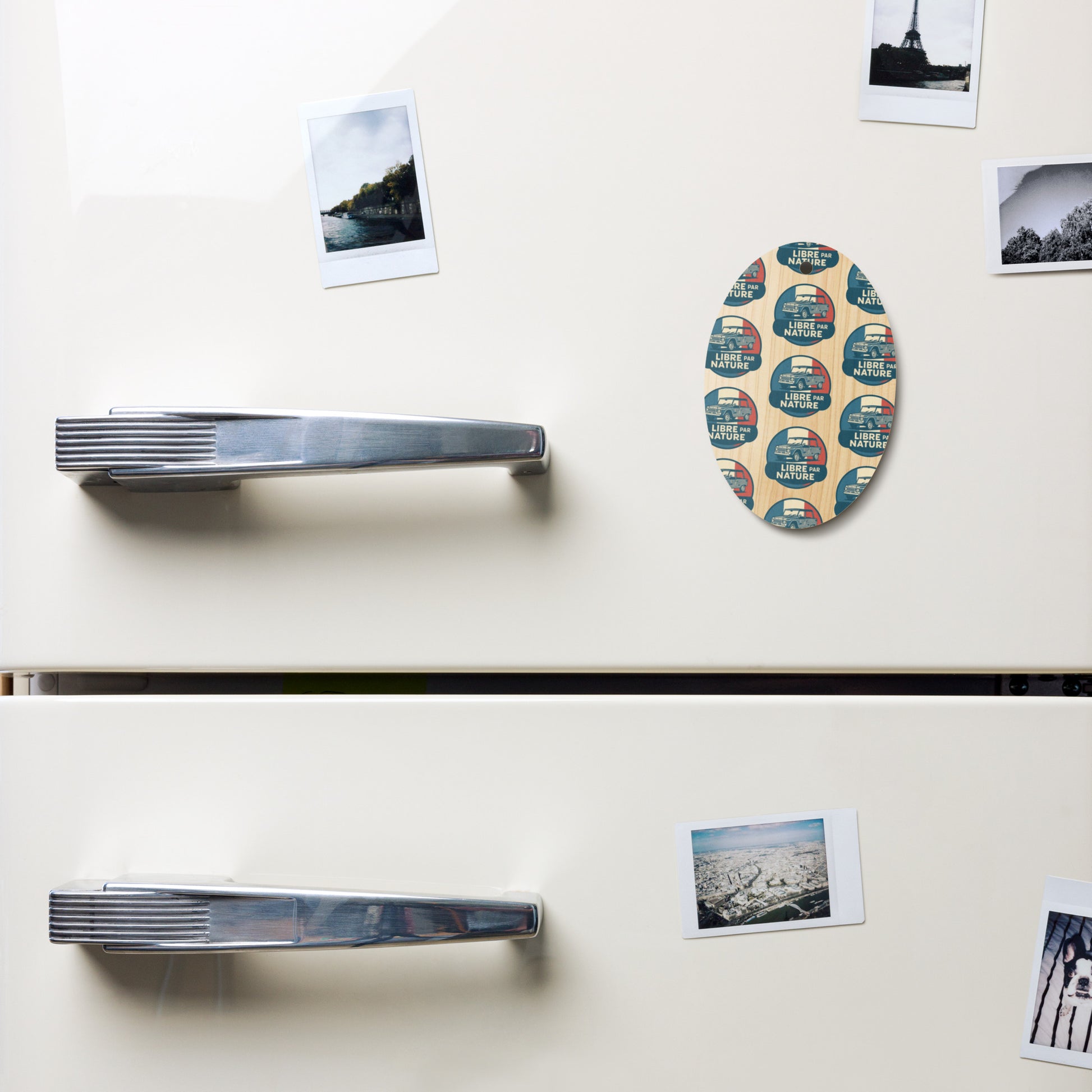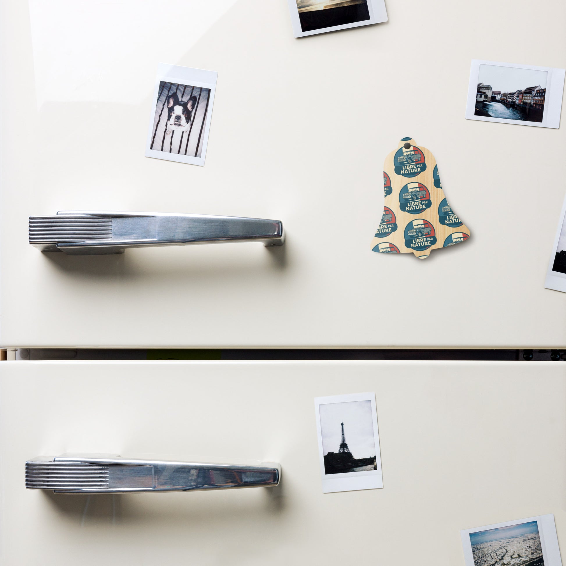 The design features the iconic Citroën Méhari in a stylish illustration, set against the backdrop of the French flag. The text "Libre par Nature" (Free by Nature) perfectly captures what this car—and this ornament—symbolizes: freedom, fun, and a touch of whimsy . Hang it on your Christmas tree, on a branch, or use it as a cool detail on your refrigerator or workspace thanks to the magnetic back .
