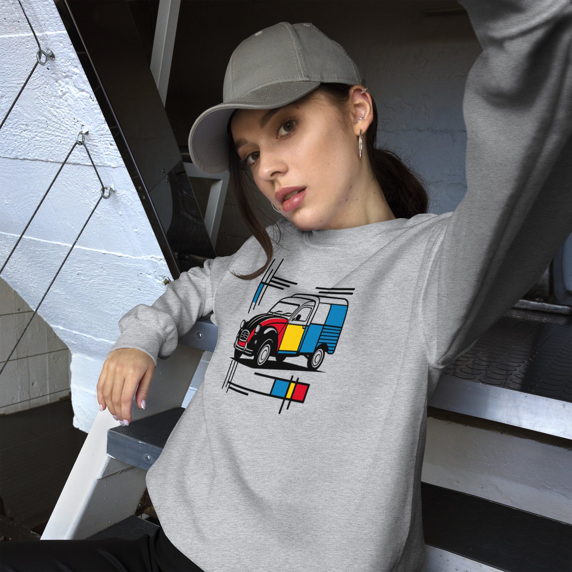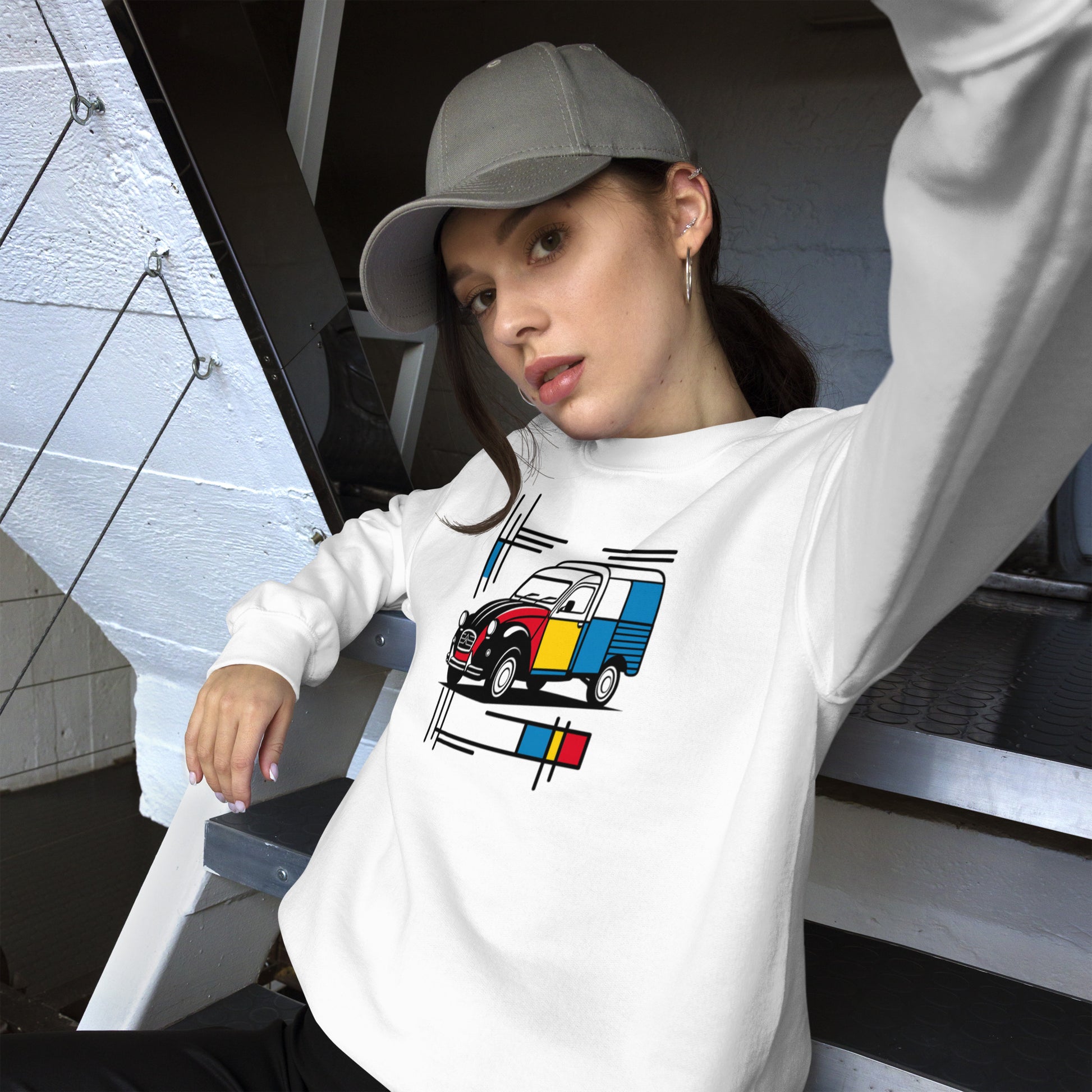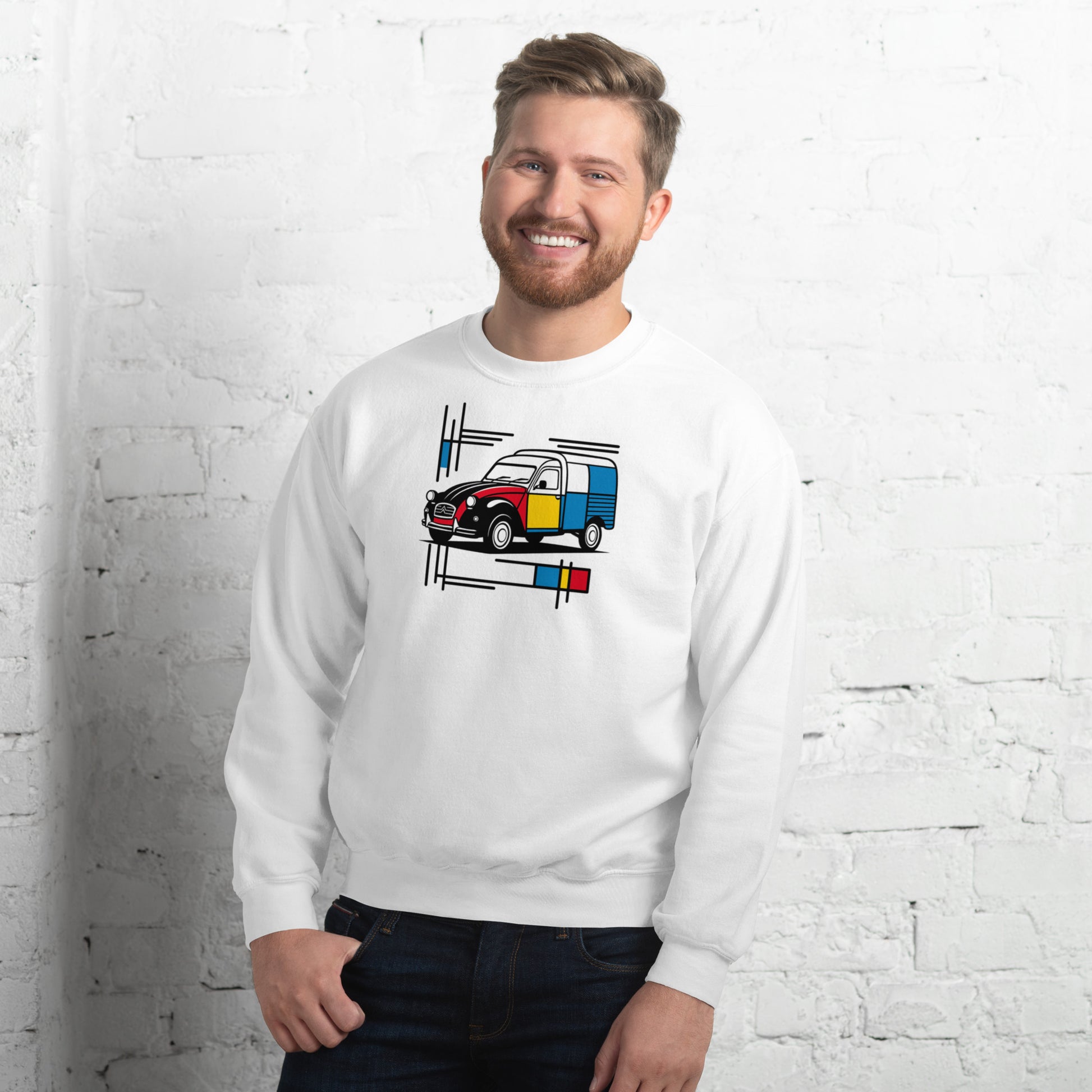 Mondrian Sweatshirt – Citroën 2CV Fourgonnette | Warm unisex design with artistic flair