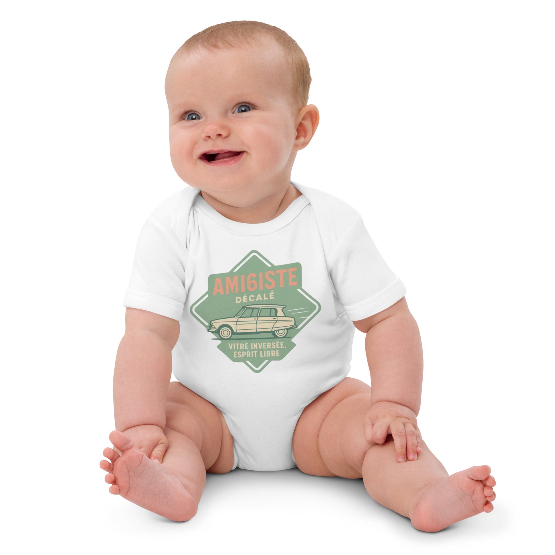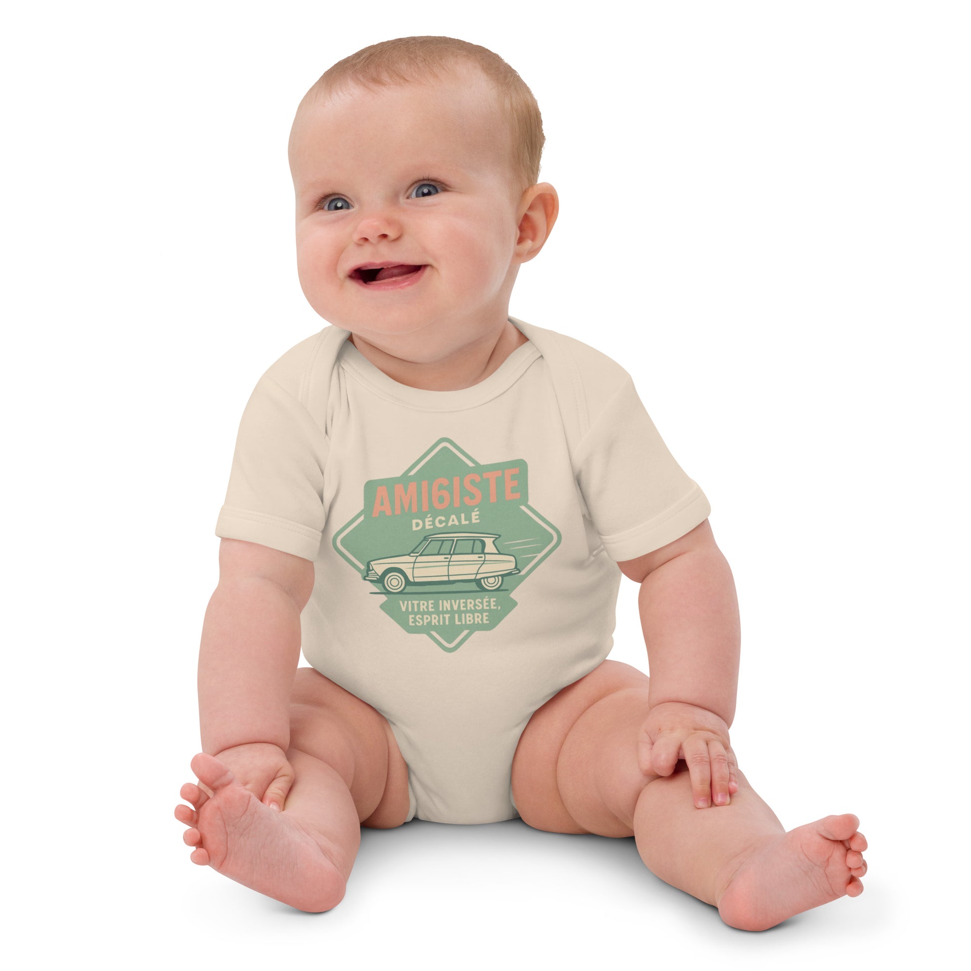 Organic Baby Romper – Citroën Ami 6 “Amigiste Décalé – Vitre Inversé, Esprit Libre”