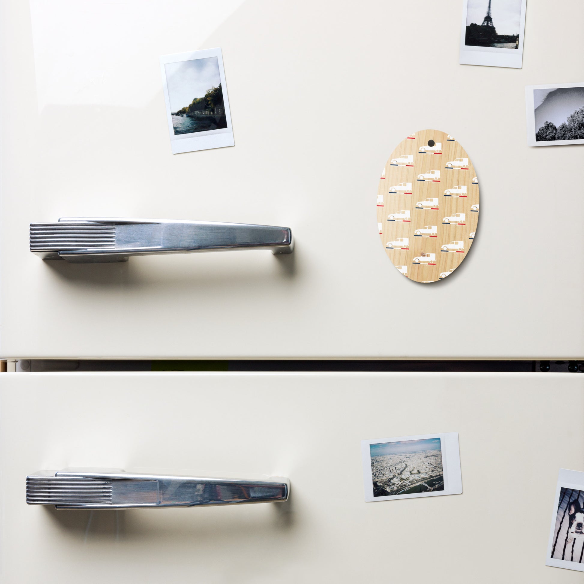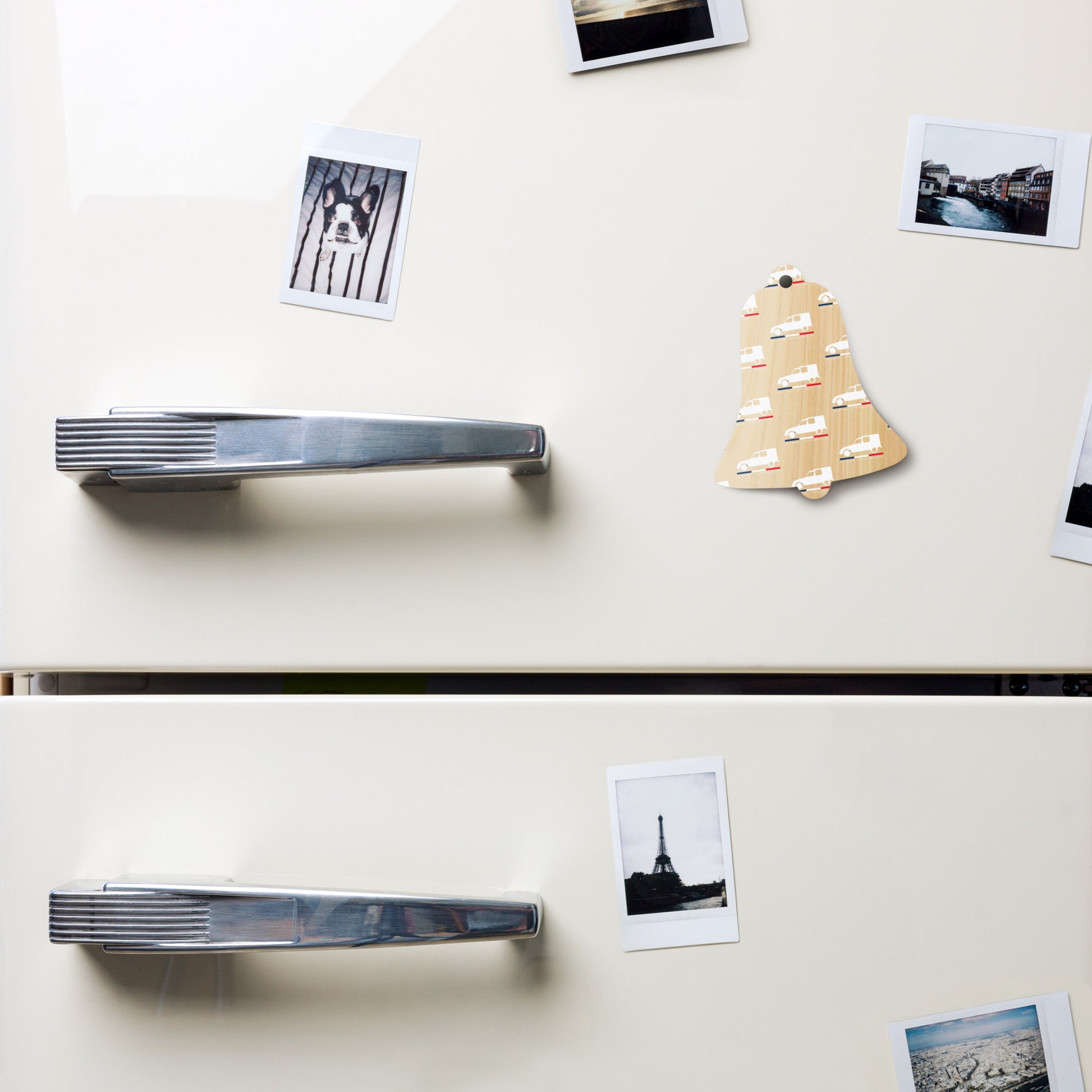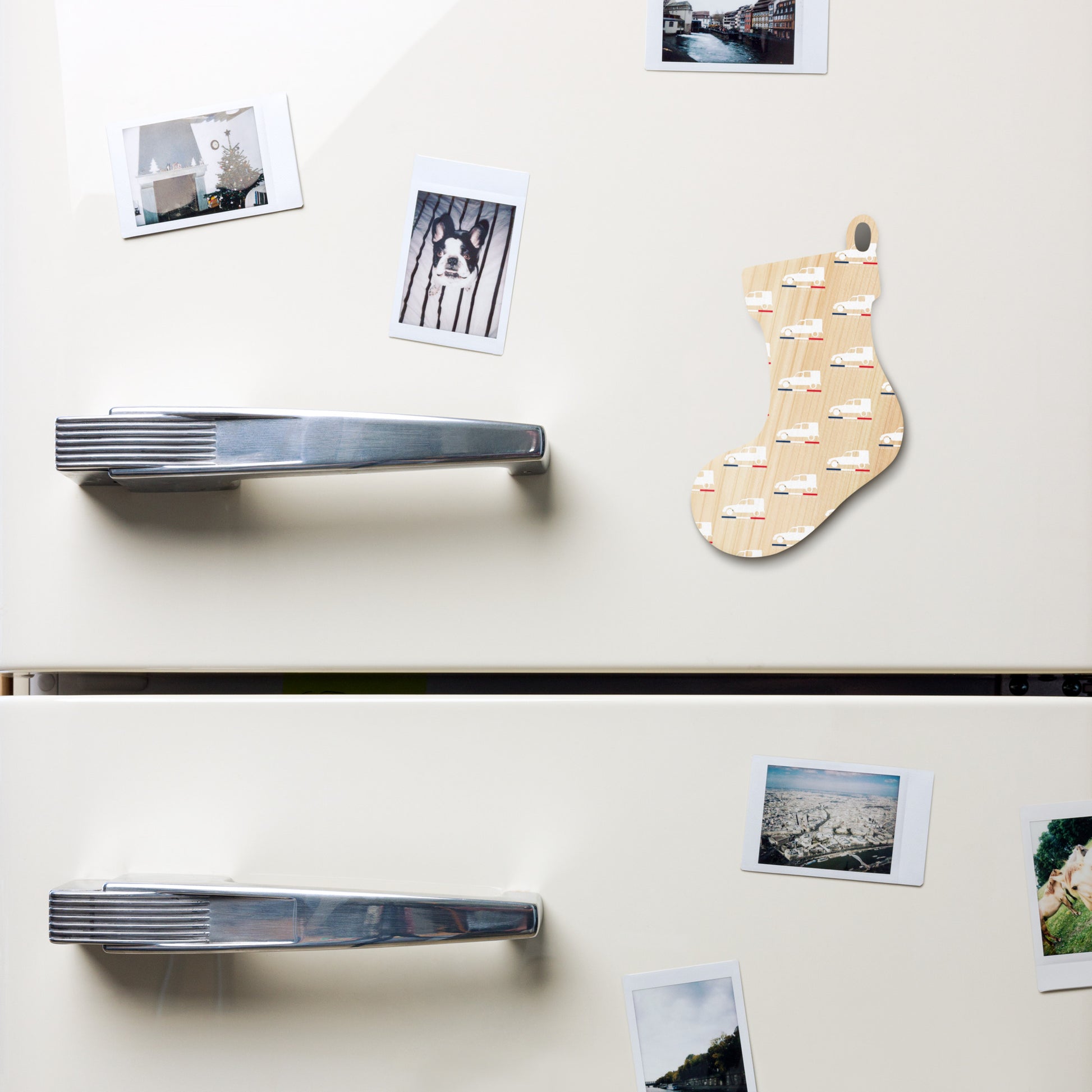 Bring a touch of French nostalgia to your Christmas tree with this stylish wooden ornament. Crafted from natural Hinoki wood , it's lightweight and durable, soft to the touch, and will give your interior a warm, authentic look. Thanks to the double-sided print, the legendary Citroën Acadiane shines from every angle: a sleek white silhouette with the French tricolor and the proud text "Acadiane – Love & Addiction."