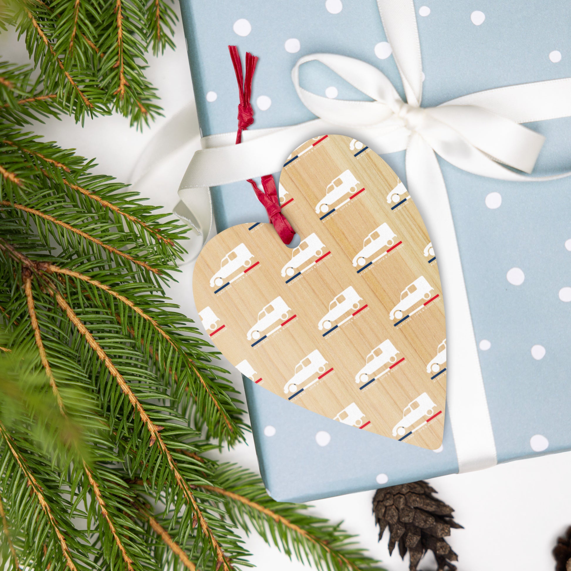 Wooden Christmas Ornament "Acadiane – Love & Addiction" | Retro Citroën charm for your tree