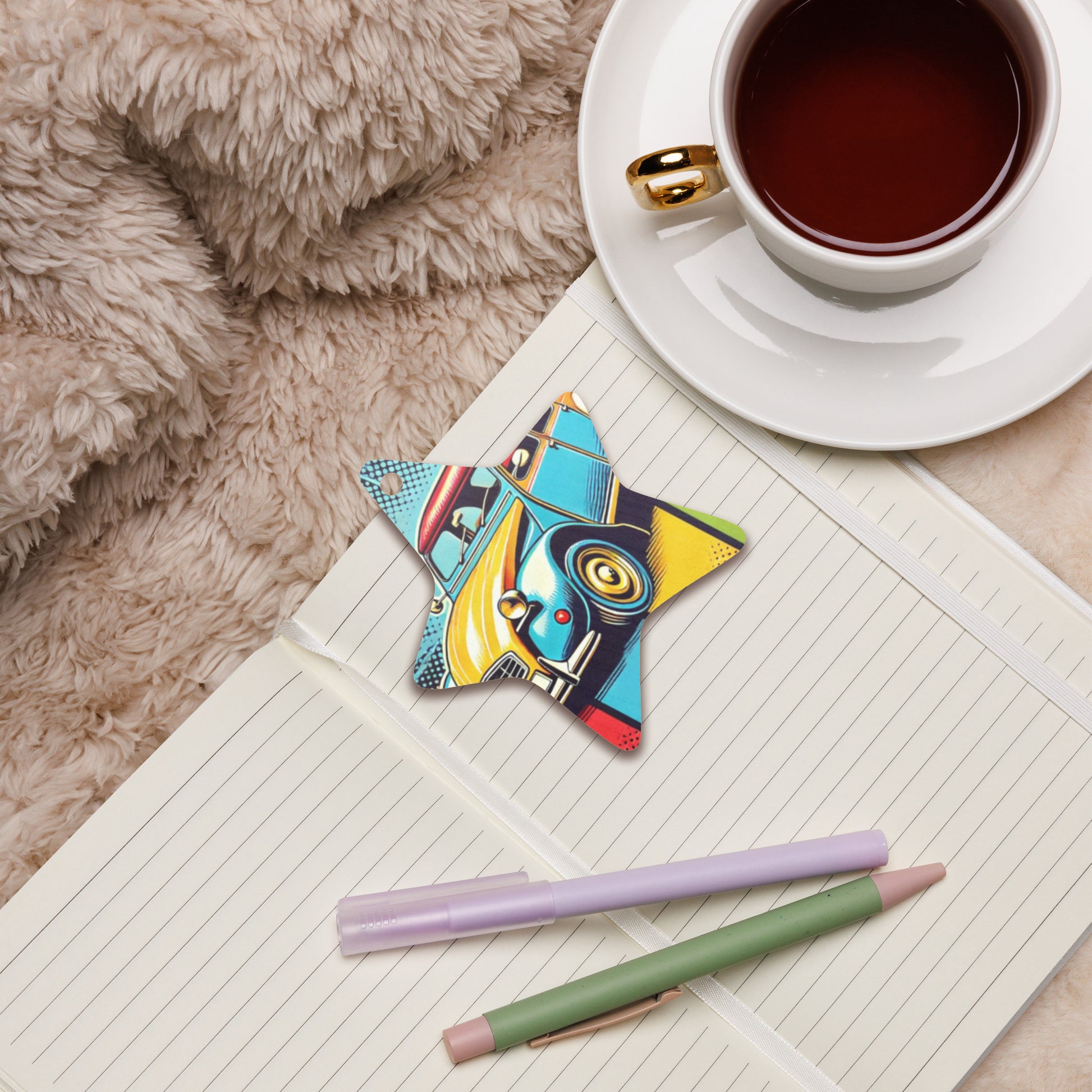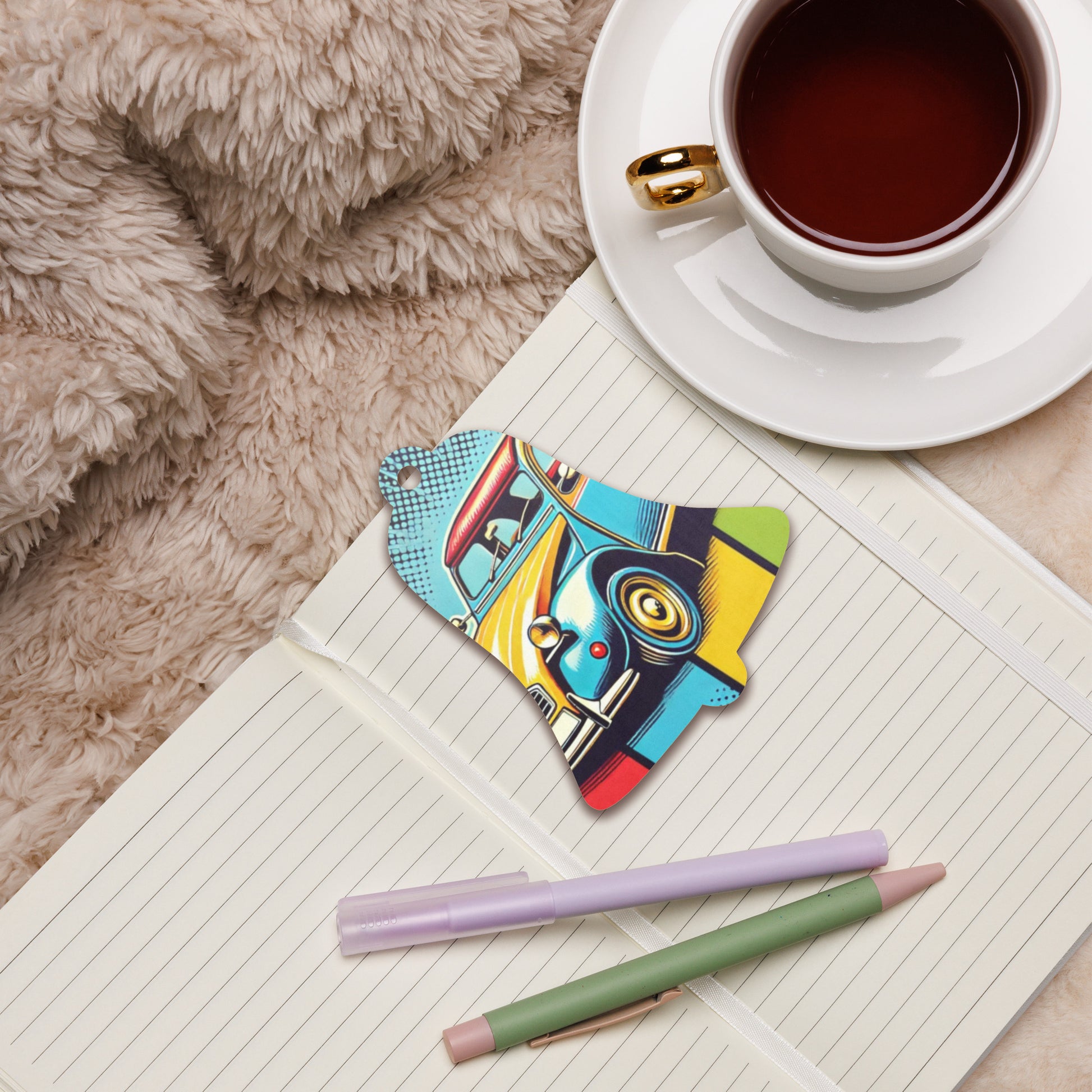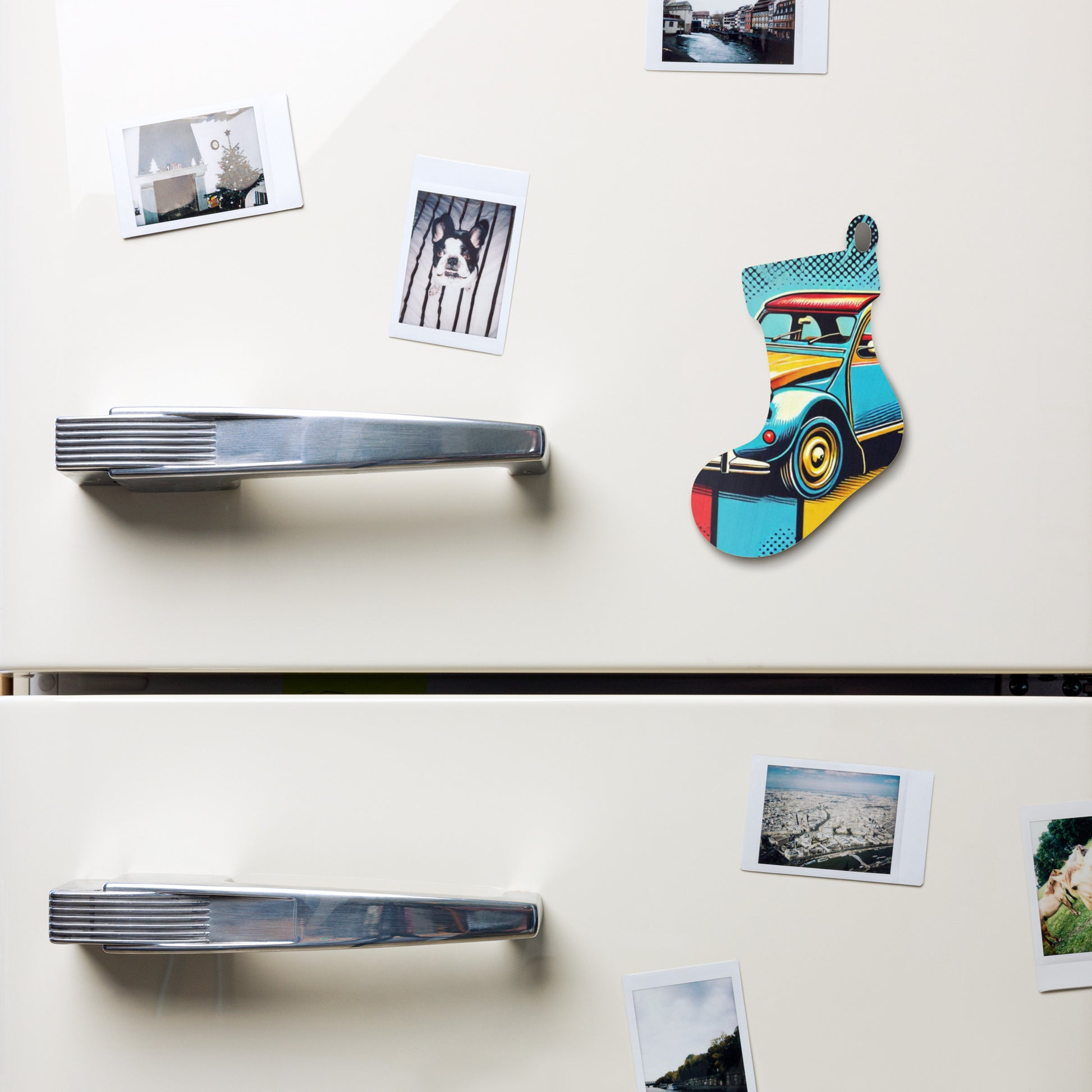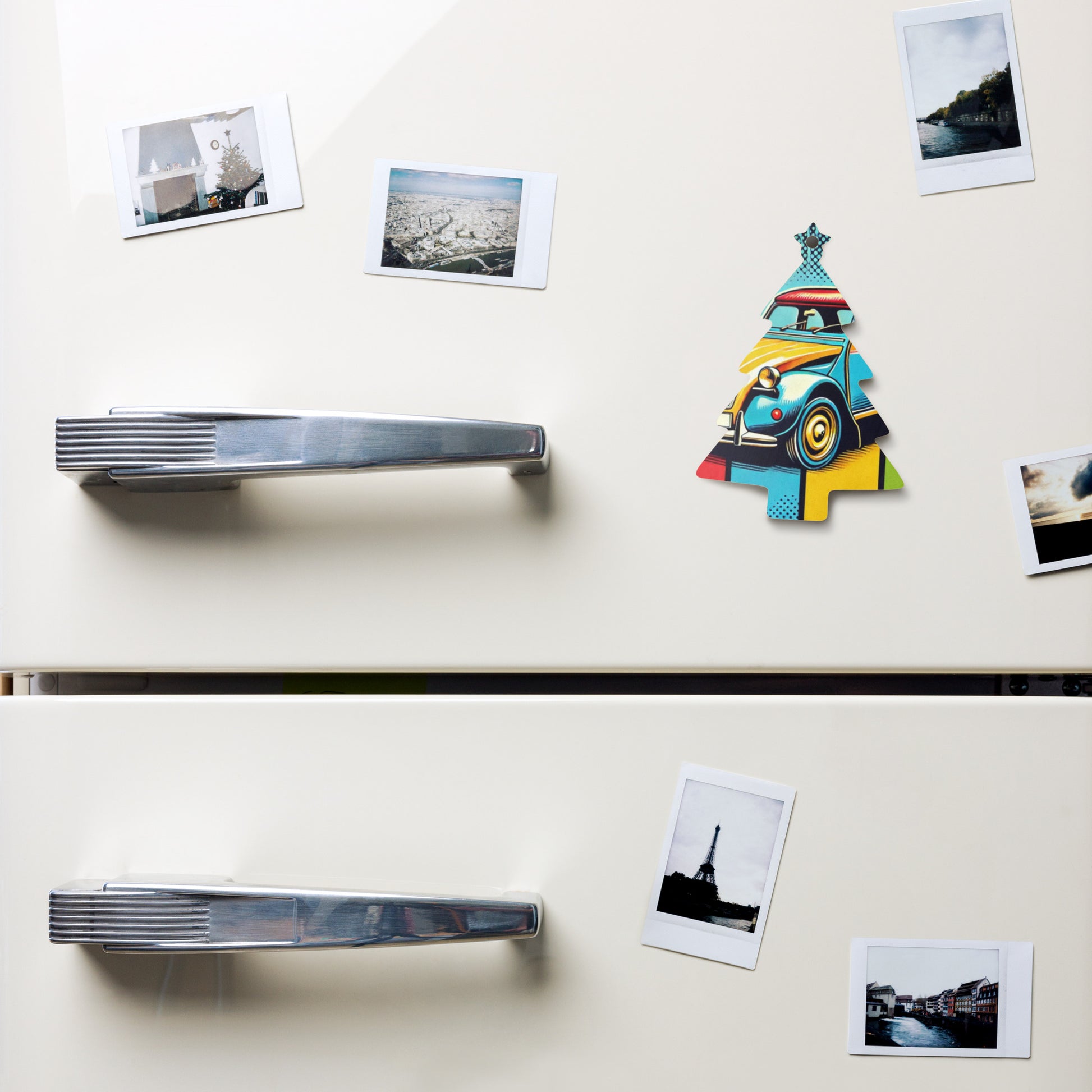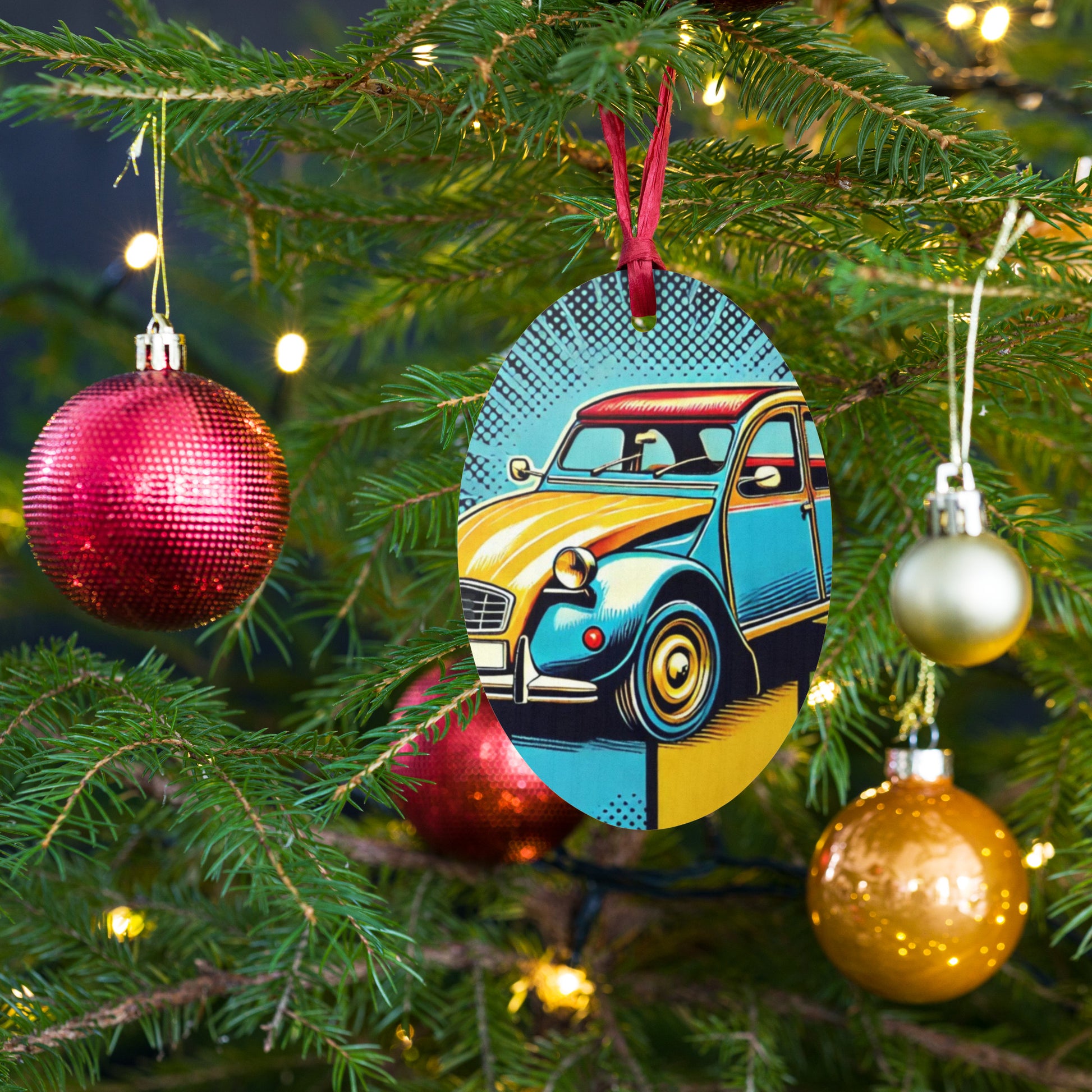 Celebrate the holidays with a nod to the past with this cheerful wooden Christmas ornament featuring a retro Citroën 2CV design . The colorful pop art illustration brings the legendary French classic to life and gives your Christmas tree or interior a unique, playful look.