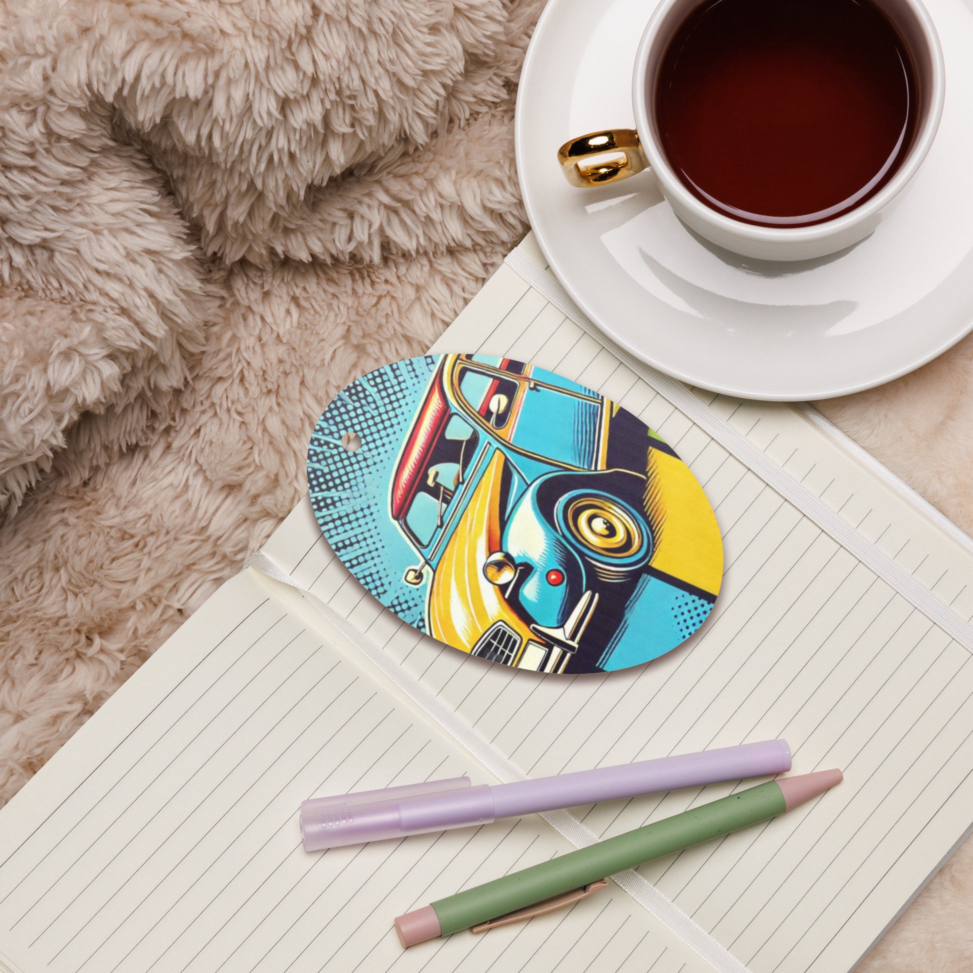 The round, organic shape gives this ornament a timeless elegance. The combination of bright colors, vintage lines, and modern design makes this piece a real eye-catcher – perfect for car enthusiasts, retro fans, or anyone who wants to give their Christmas tree that little bit of extra character.