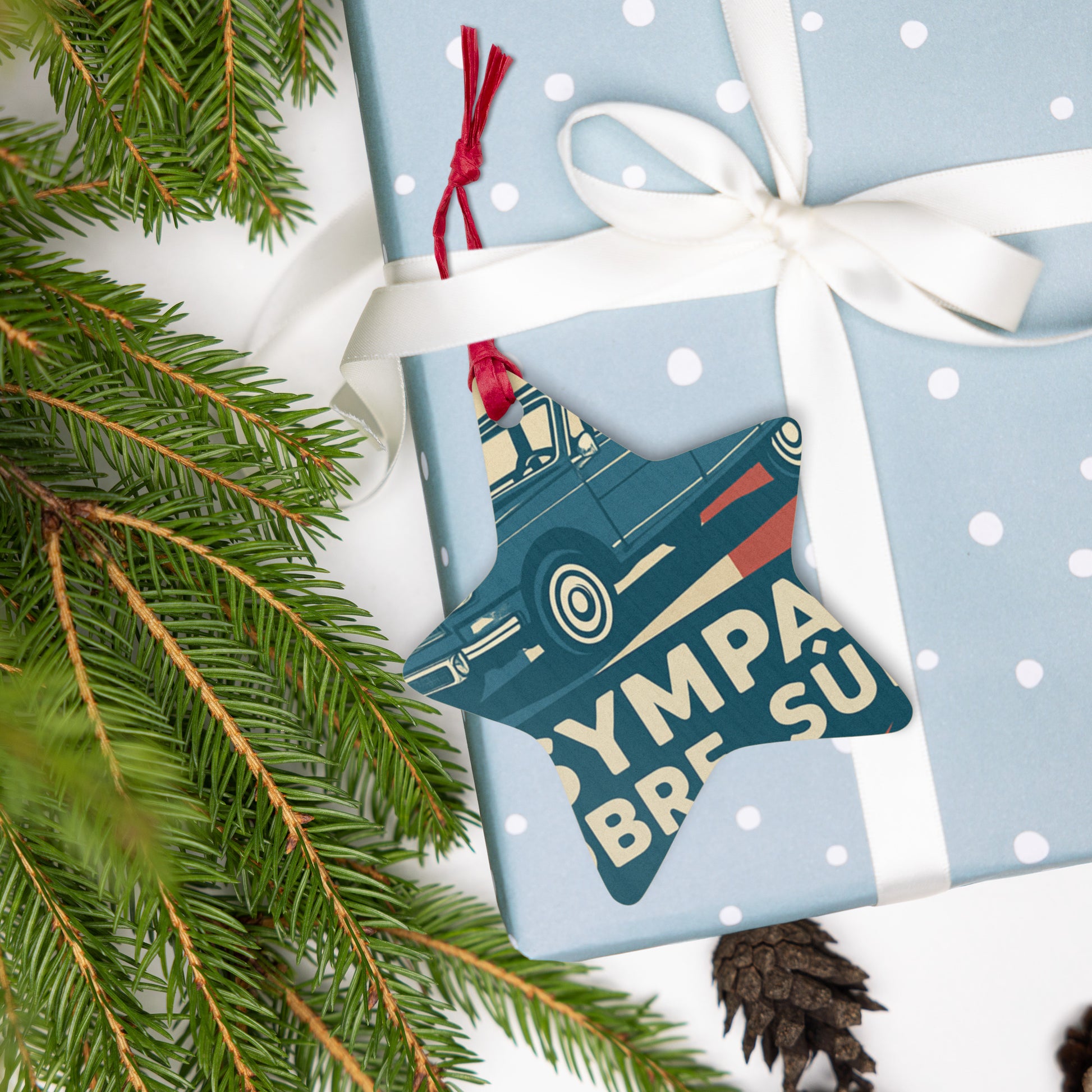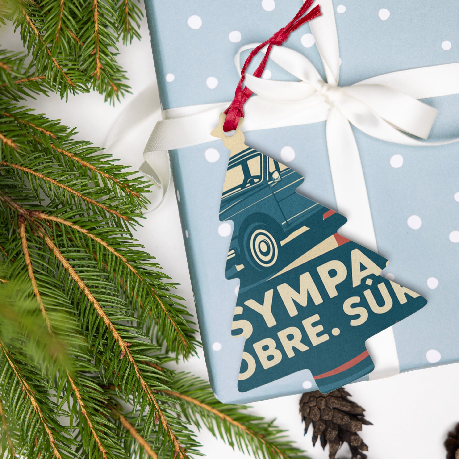 Crafted from solid Hinoki wood, this ornament is lightweight and soft to the touch, yet sturdy and durable. Thanks to its double-sided printing and magnetic backing, you have endless possibilities: hang it with the red ribbon or use it as a stylish magnet. A unique decoration that adds both character and warmth.