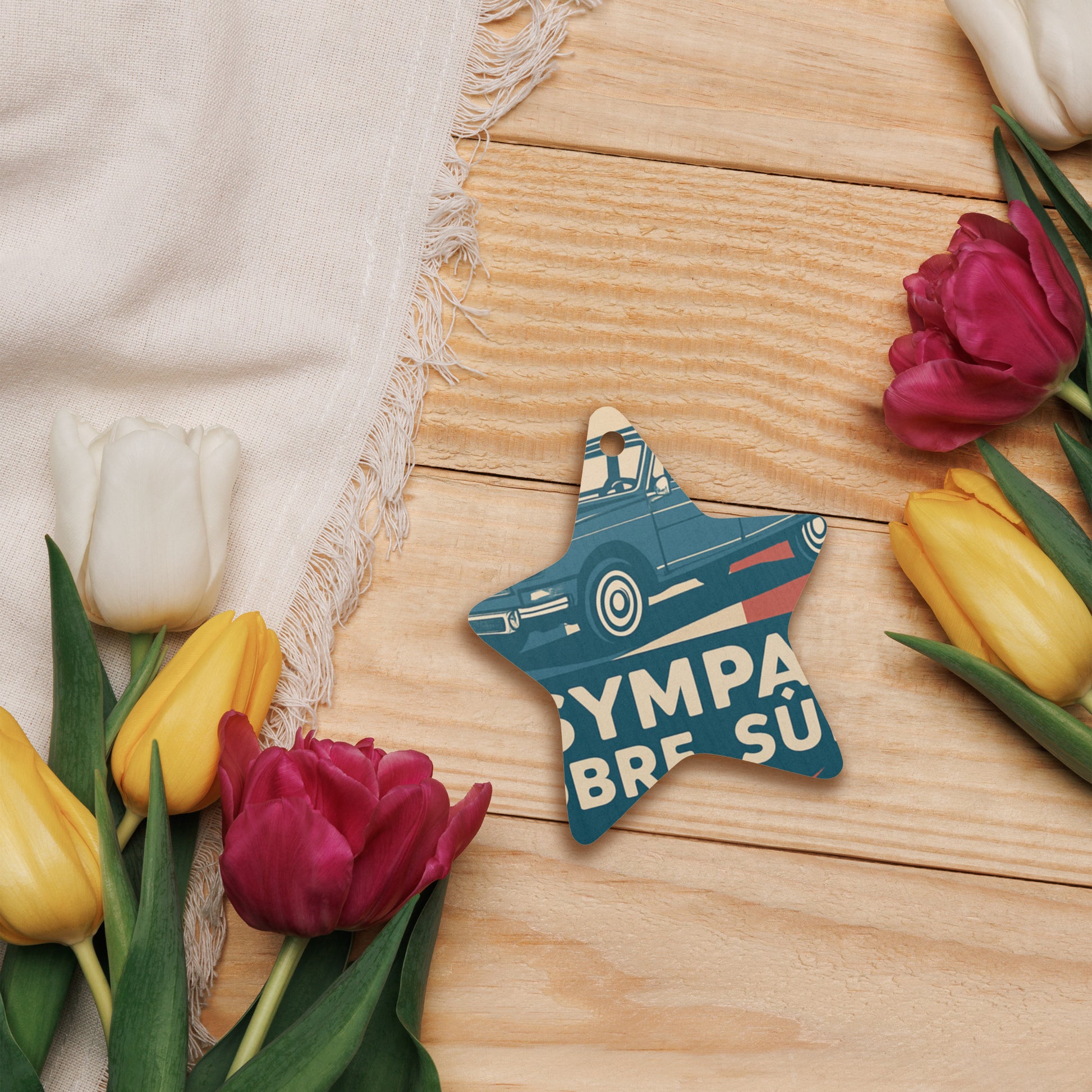 Want a touch of French retro in your home? This wooden ornament featuring the Citroën Ami will instantly bring a smile. With its playful design and the "Sympa" text, this accessory honors the charm of this quirky classic from the 1960s. Perfect for vintage car enthusiasts and anyone who loves a cozy, nostalgic atmosphere at home.