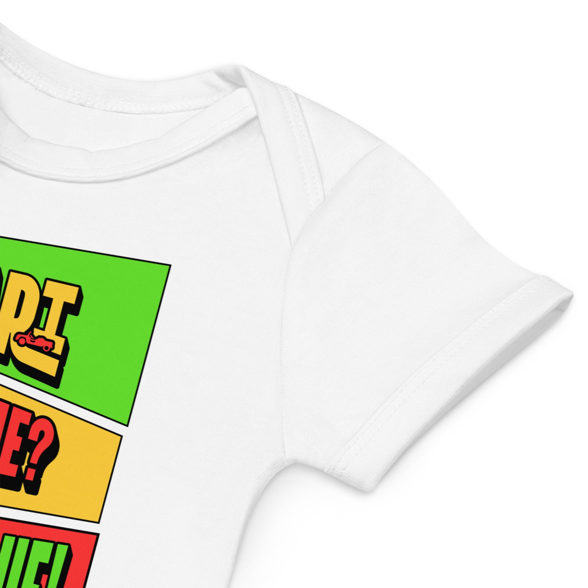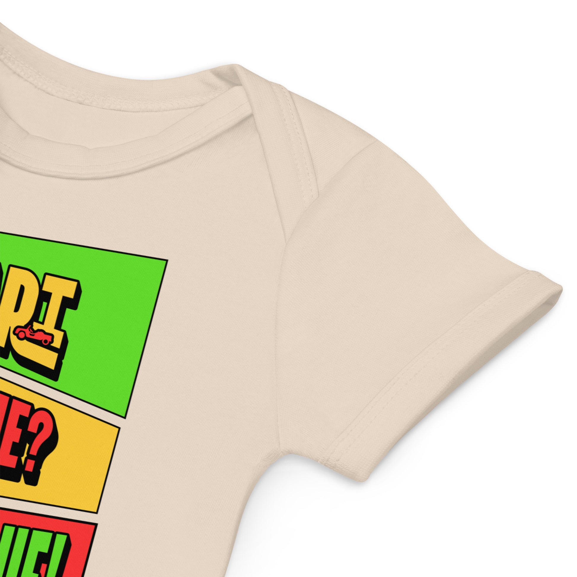 Un cadeau idéal pour les baby showers, les passionnés de voitures ou les parents qui aiment les vêtements pour bébé joyeux et originaux avec une touche rétro.