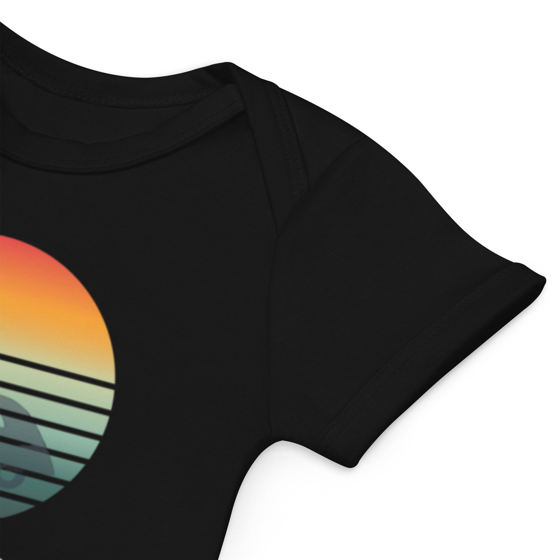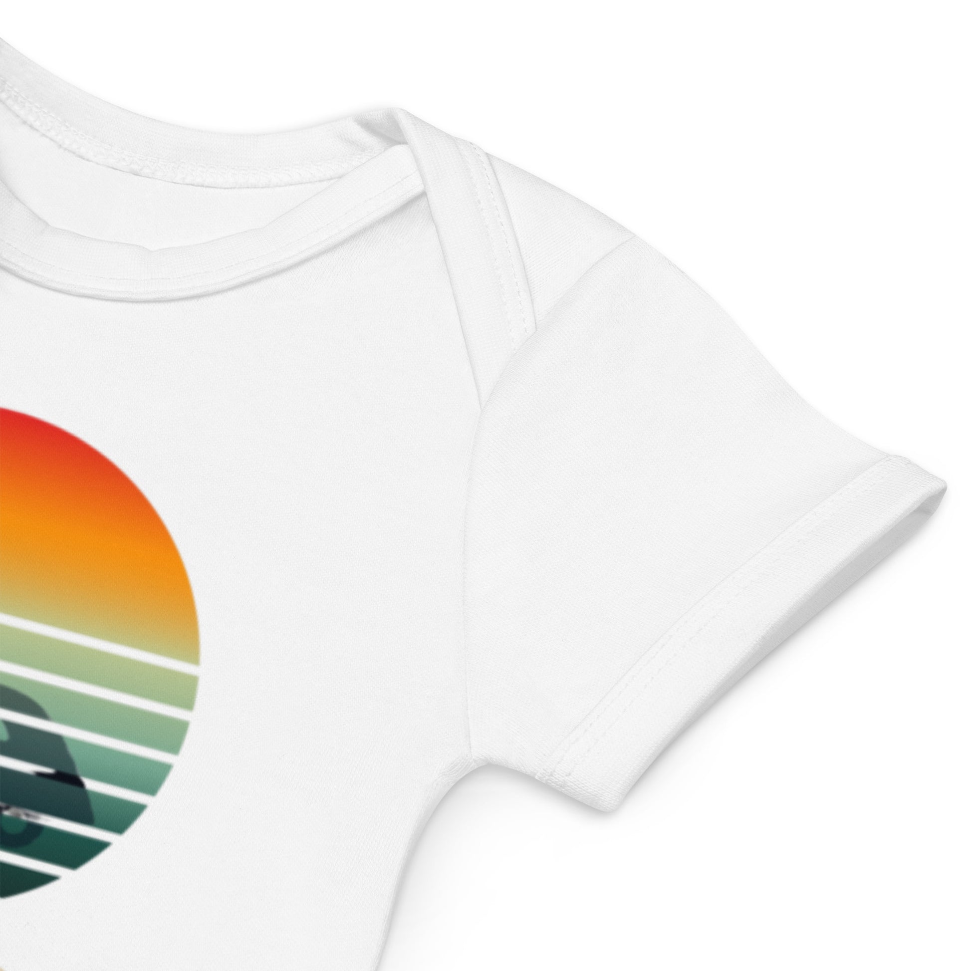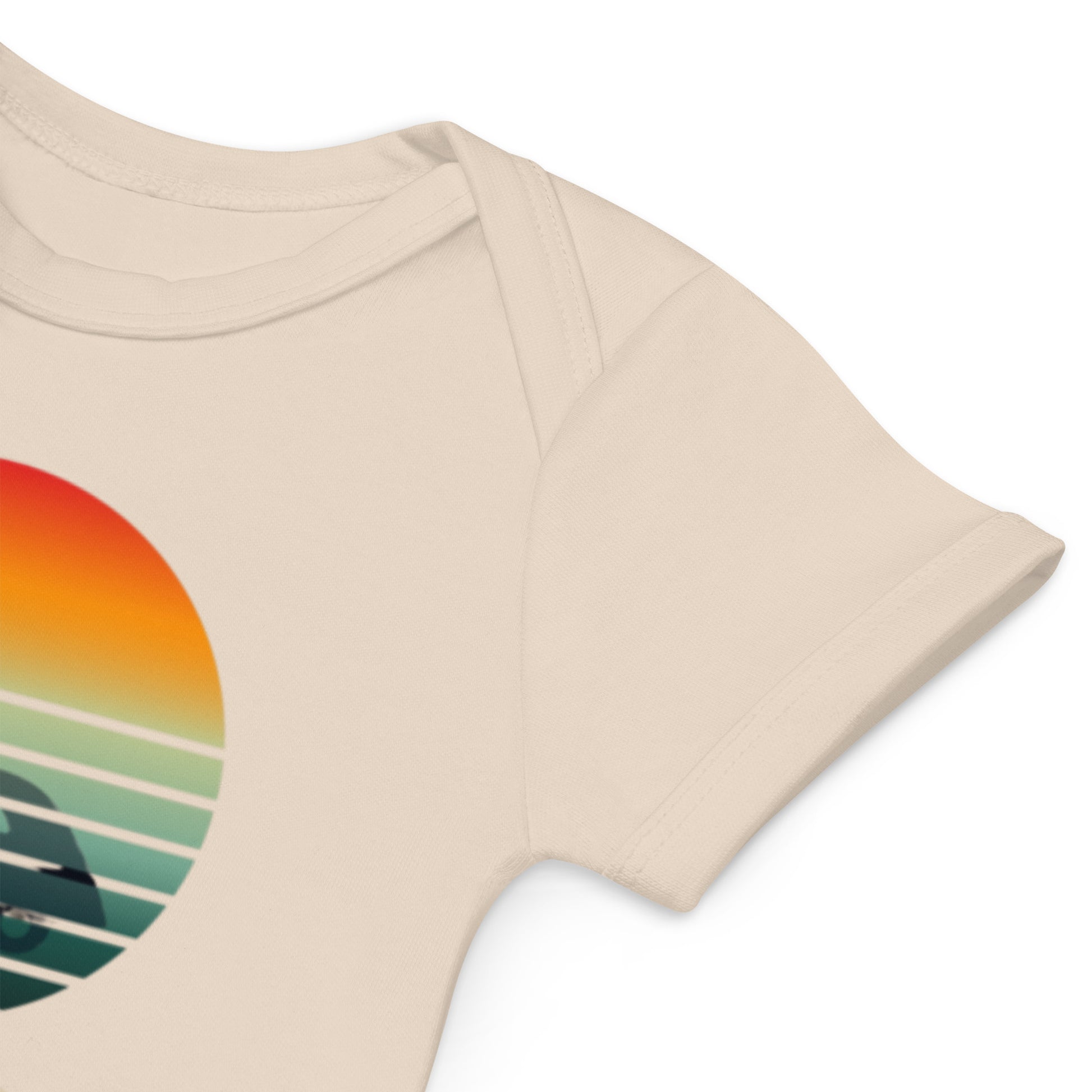 Une jolie barboteuse confortable qui fait immédiatement sourire. Un cadeau idéal pour les parents qui aiment le soleil, la mer, le style rétro et une touche de paradis.