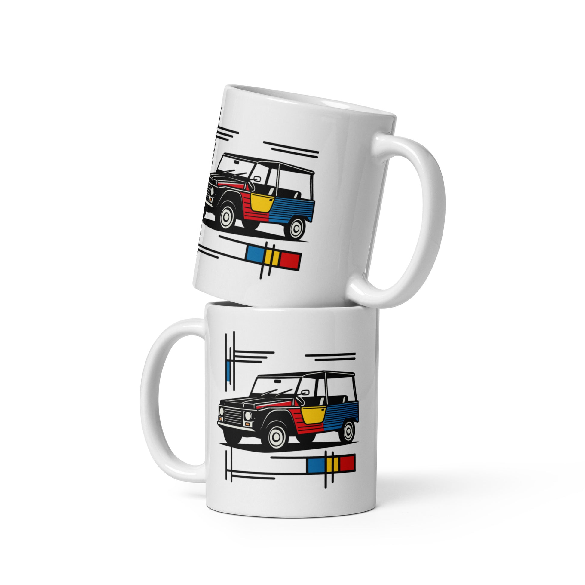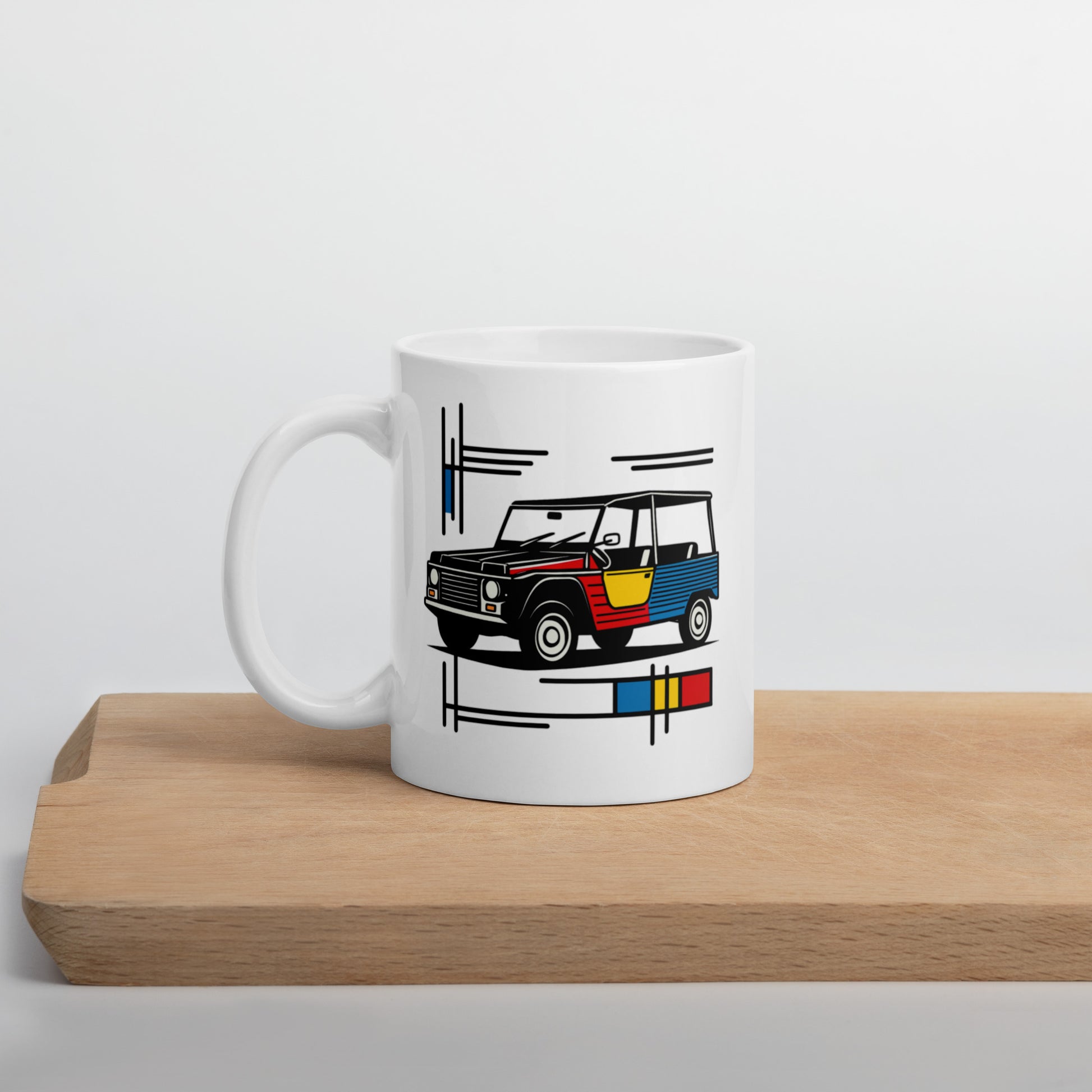 Mug Citroën Méhari Mondriaan – Design iconique et fonctionnalité au quotidien réunis.