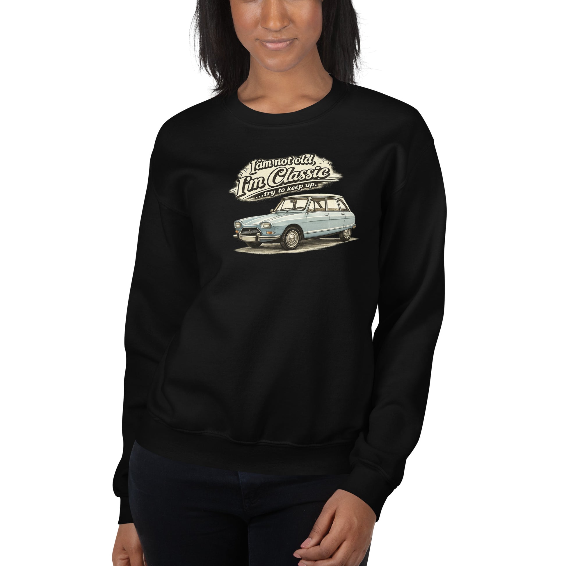 Classic Collectie Sweatshirt – Citroën Ami 8 Vintage Illustratie | “I’m not old, I’m Classic”